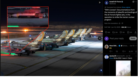 كما ظهر هذا الطراز في منشور سابق للقوات الجوية الإسرائيلية على منصة X، حيث ظهرت القنبلة على إحدى الطائرات، وهو دليل إضافي على إدخالها في الاستخدام العملياتي.