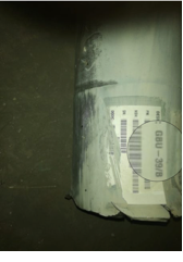 في صورة أخرى نُشرت من داخل الموقع، ظهر جسم معدني أسطواني يُرجَّح أنّه المقذوف غير المنفجر.