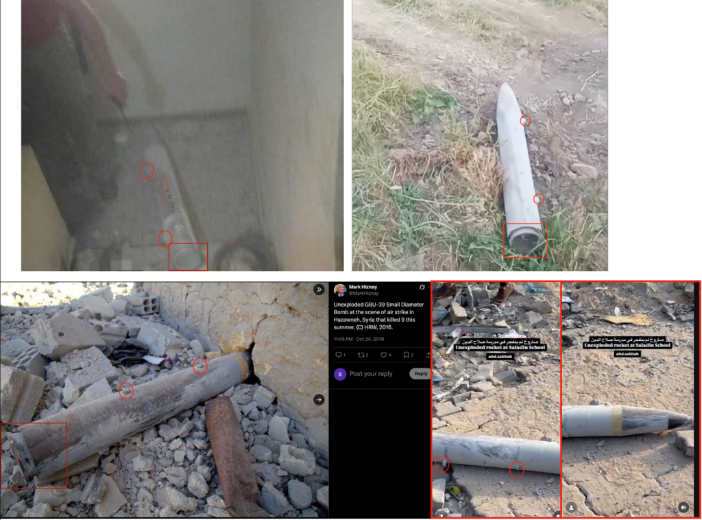 ولتحديد طبيعة الذخيرة التي طلبت الولايات المتحدة استعادتها، جرى تحليل المواد البصرية المتاحة من موقع الاستهداف.