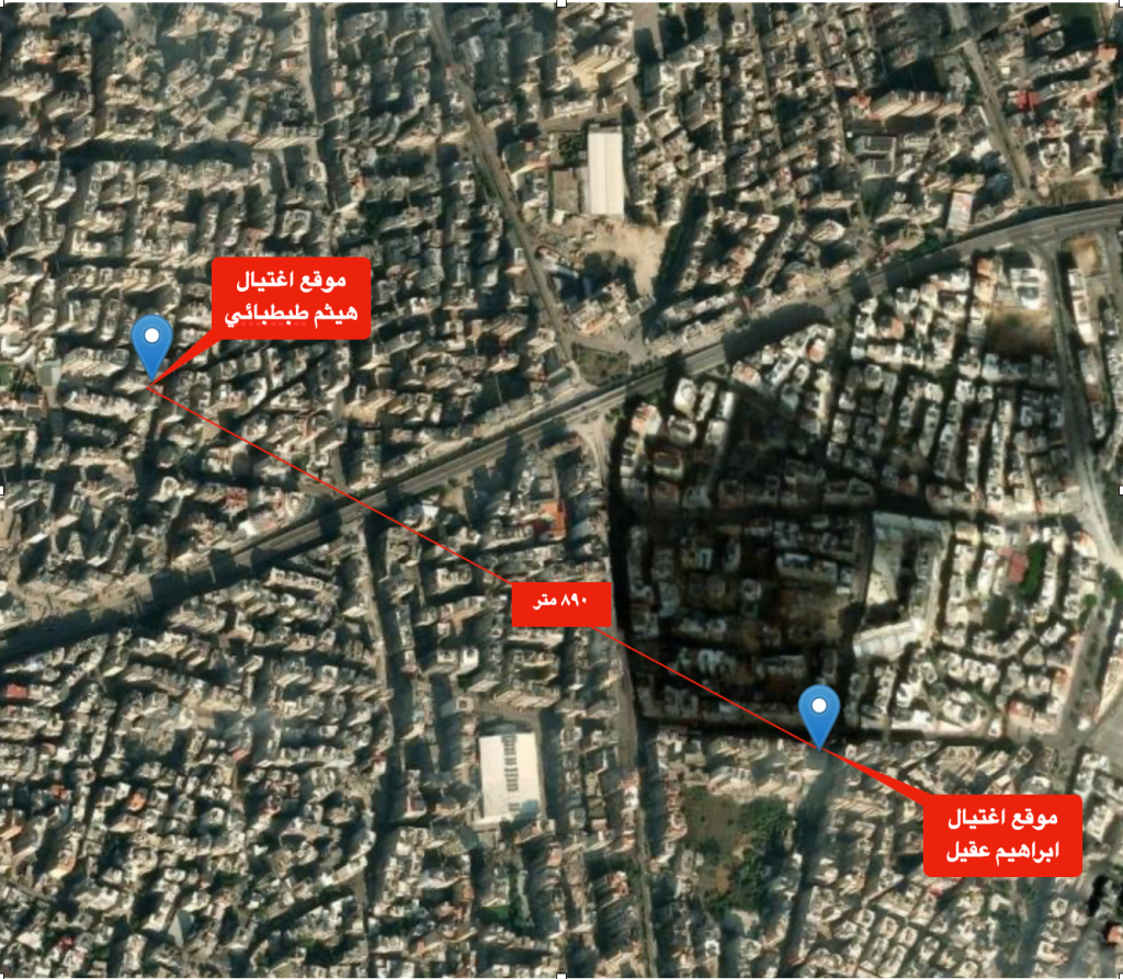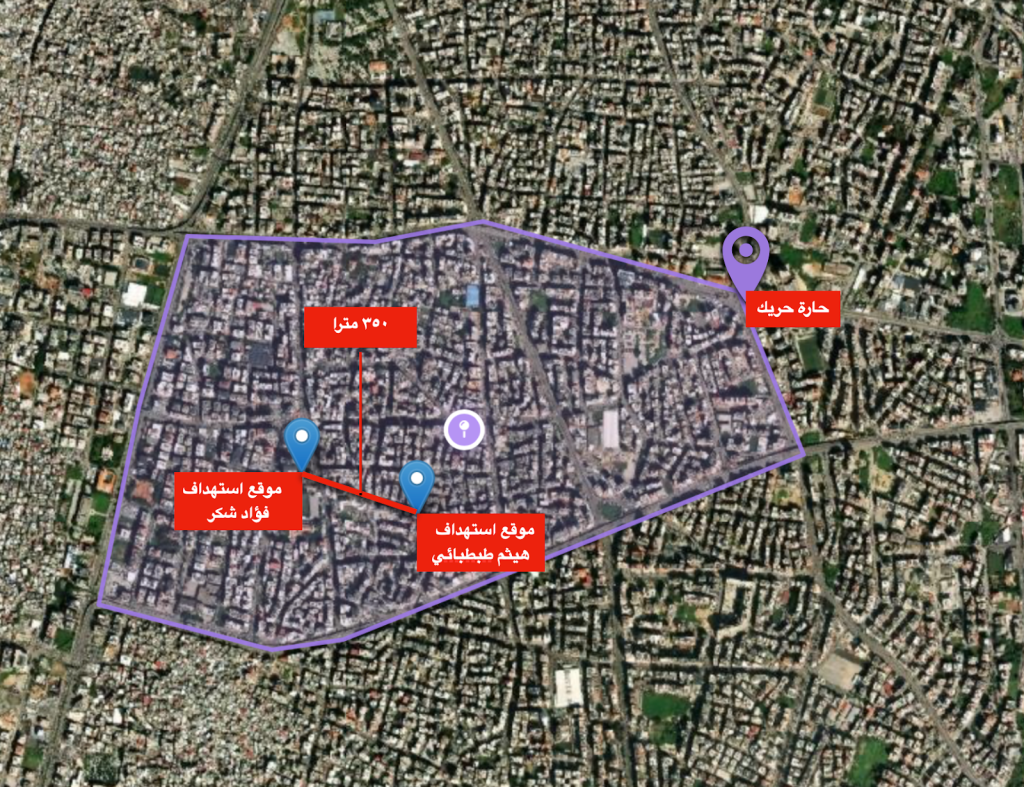 تبين أن المكان الذي اغتيل فيه “فؤاد شكر” يبعد حوالي ٣٥٠ مترا من مكان اغتيال ” هيثم الطبطبائي ” داخل حارة “حريك”