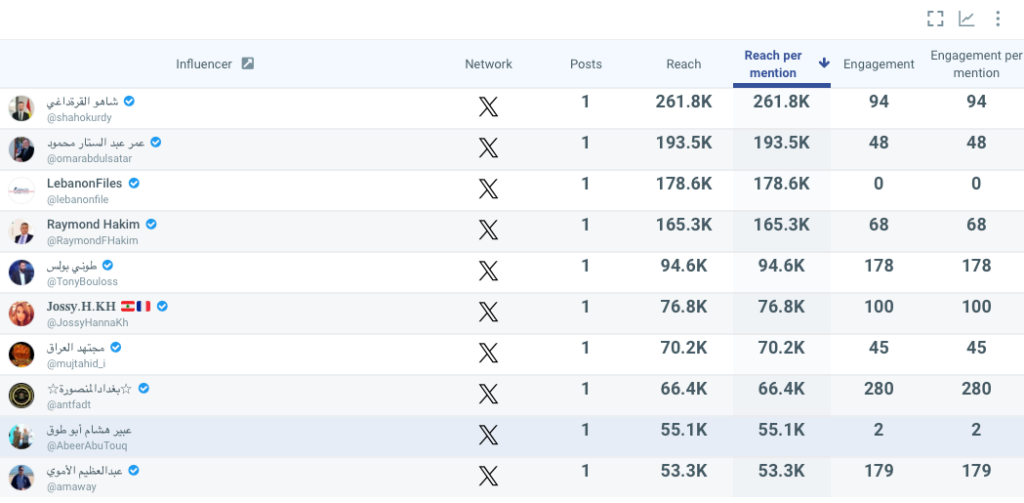 مشاركة صحفيين وإعلاميين موثقين (عراقيين ولبنانيين) في الحملة بنفس المحتوى المضلل وفي نفس التوقيت يشير إلى: