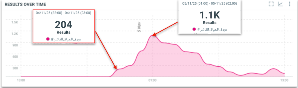 يُظهر التحليل أن وسم #عودة_الحياة_للفاشر لم يكن تعبيرًا عفويًا عن آراء المستخدمين، بل حملة منظمة بدقة تعتمد على: