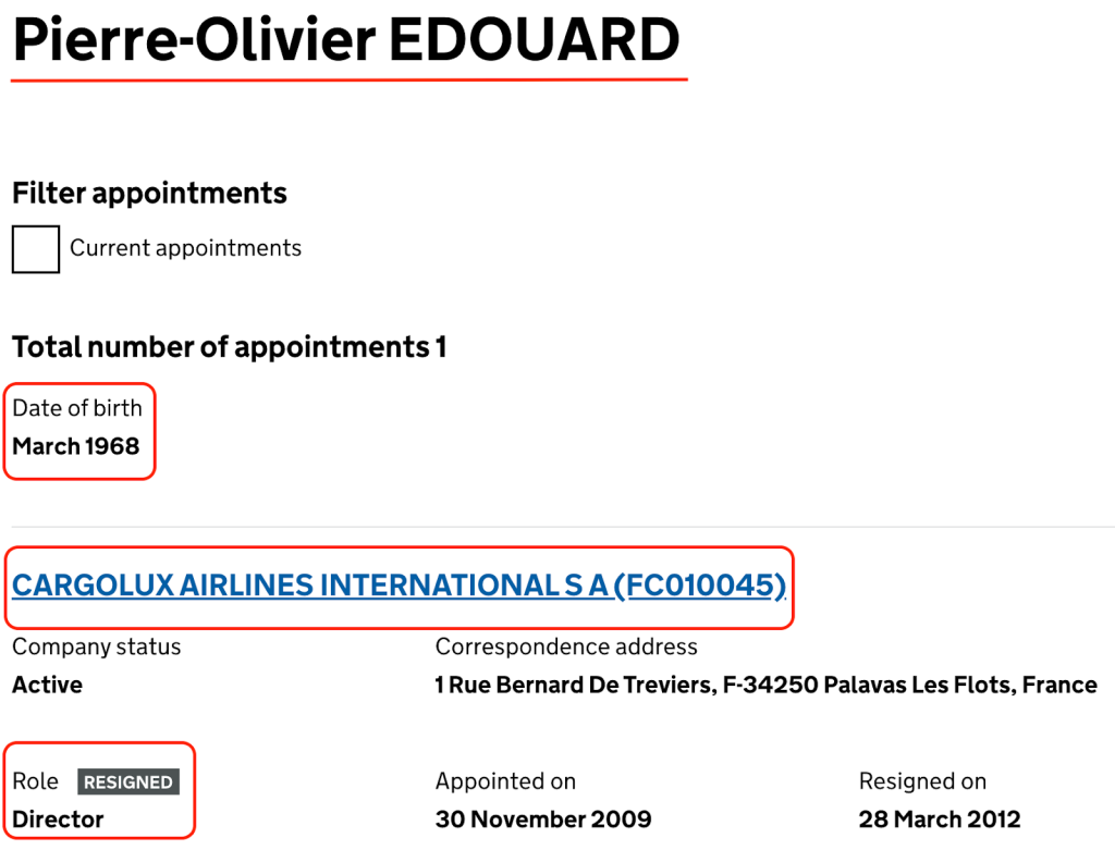 أما الرئيس التنفيذي للشركة فهو بيير أوليفييه إدوارد PIERRE OLIVIER EDOUARD، وهو رجل أعمال فرنسي من مواليد مارس ١٩٦٨. عمل في الفترة بين نوفمبر ٢٠٠٩ ومارس ٢٠١٢ مديرا لشركة كارجولوكس الرائدة في مجال الشحن الجوي، وفق سجلات الحكومة البريطانية: