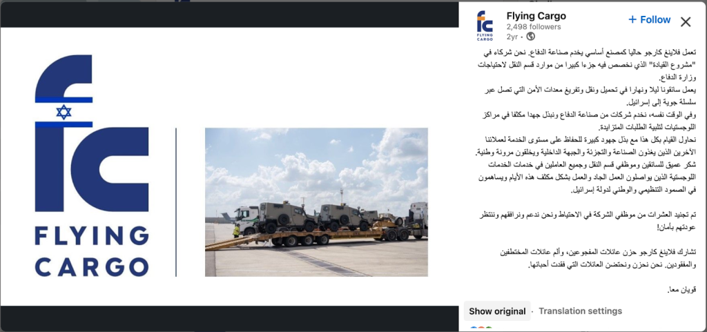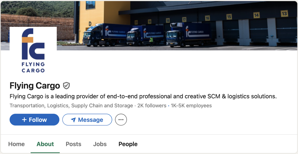 شركة “Flying Cargo” تعرف نفسها على حسابها على منصة “لينكد ان” الخاص بها بأنها شركة رائدة في توفير حلول إدارة سلاسل التوريد والخدمات اللوجستية الشاملة.