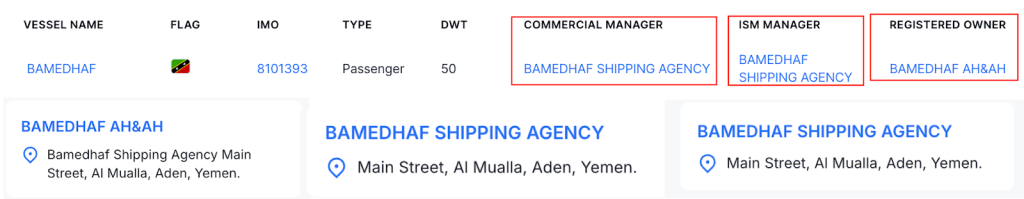 وبالبحث عن مالك السفينة توصلنا إلى أن مالك السفينة هي شركة تدعى “BAMEDHAF AH&AH” وهي شركة مقرها عدن باليمن.