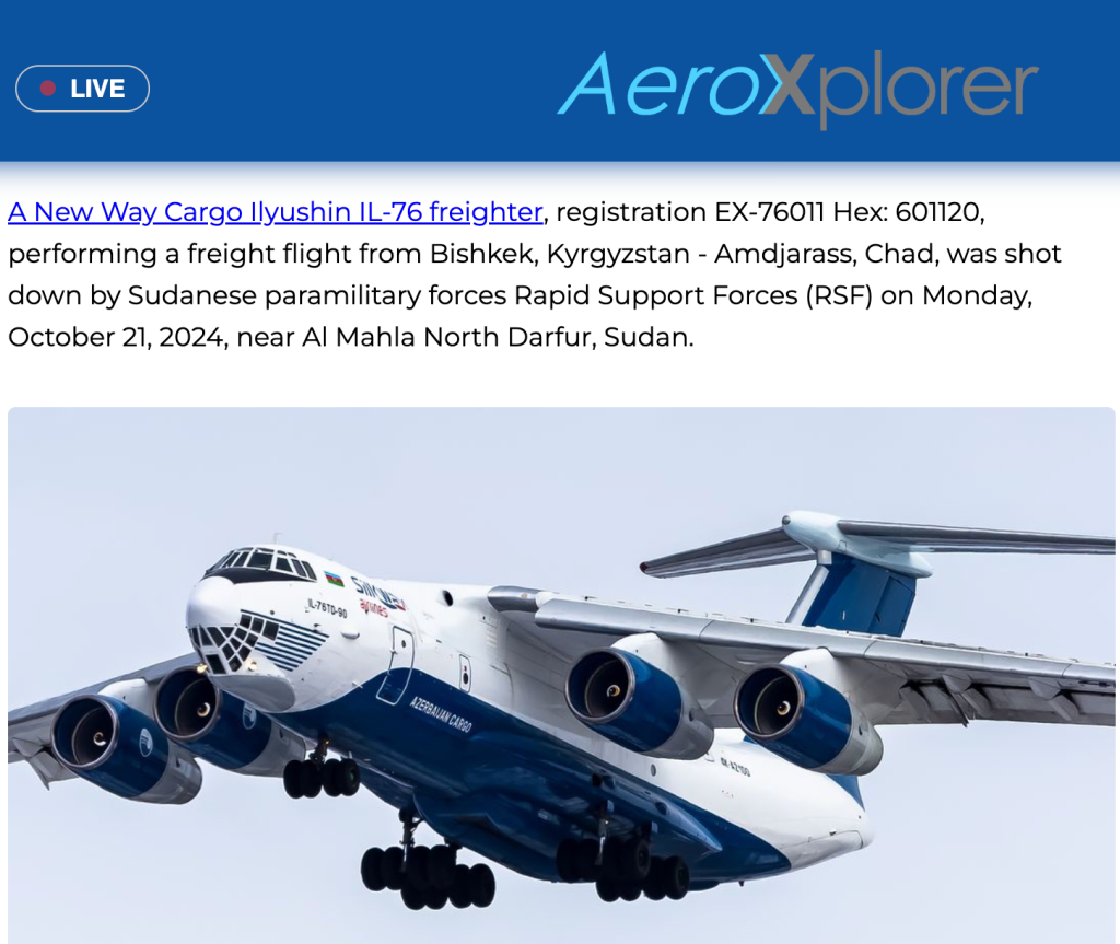 وفي أكتوبر ٢٠٢٤ أسقطت قوات الدعم السريع أحد الطائرات التابعة لشركة “New Way Cargo” عن طريق الخطأ بالقرب من دارفور في السودان .