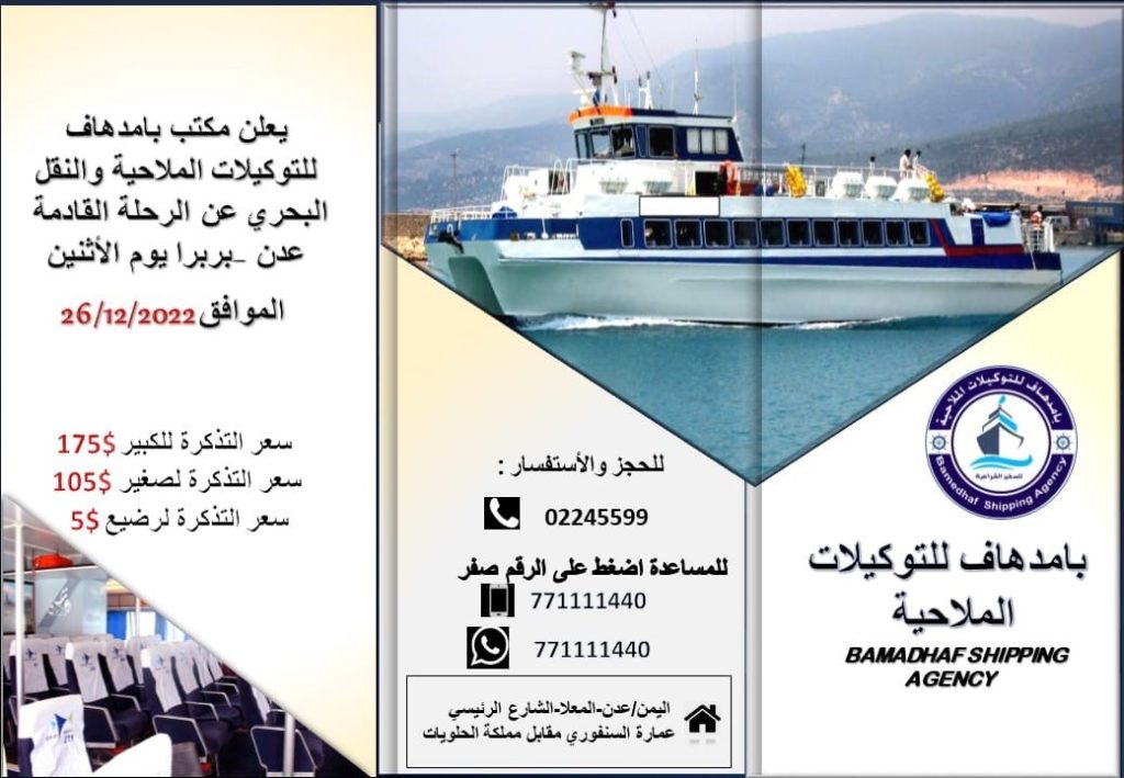 وهي سفينة تعمل في مسار واحد فقط (عدن – بربرة) كما يشير سجل رحلاتها السابق