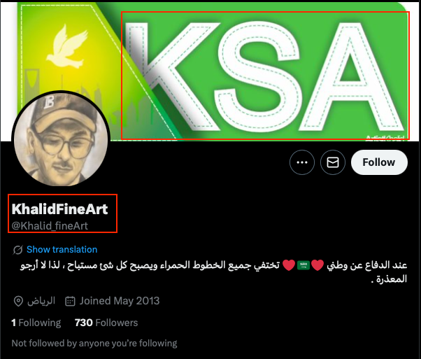 من بين الحسابات التي ظهرت ضمن قائمة الأكثر تأثيرًا في الترويج للوسم #انزل_شارك_مستقبل_وطن، برز حساب يحمل اسم KhalidFineArt (@Khalid_fineArt).